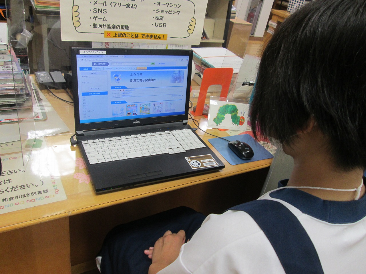 朝倉市電子図書館の閲覧をしました。 最後に、図書館の仕事についての質問タイム。