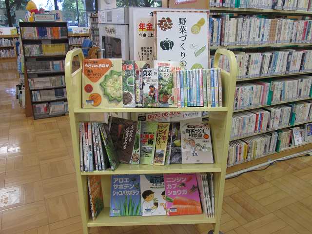 ⑥出来上がり! 野菜に関する本を会場内とはき図書館内で展示
